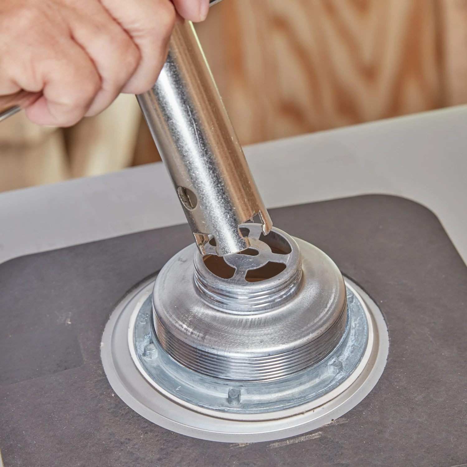 - Holds basket strainers in place during installation