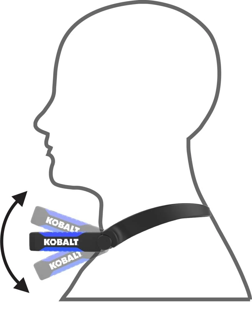 For anyone looking for a reliable bright light, the new Kobalt 2954924 LED neck light offers the first revolutionary, wearable design that can be worn comfortably on your neck all day long. Boasting a bright 210 lumens, with the ability to articulate the beam up to 90°, this light is perfect for working in both close quarters and long distance applications up to 30 meters. Aim the beams in different directions to offer a wider range of light or point them down to point on your work area. Unlike a traditional headlamp, you can use this light without accidentally blinding bystanders. This ergonomic, flexible design is universal to fit all necks comfortably without the need to make adjustments to a headband strap. 2 AA batteries are included and can run from 3 hours on high up to 6 hours on low.